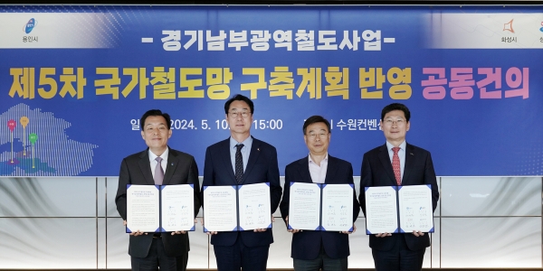 경기남부광역철도 사업을 ‘제5차 국가철도망 구축계획’ 신규사업에 반영해 줄 것을 국토교통부에 요청하는 공동건의문에 서명했다.