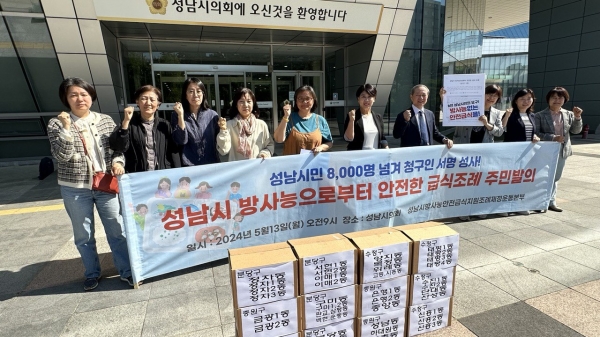 성남시 방사능안전급식 조례제정운동본부는 2023년 12월18일 발족식을 진행한 이후 성남시 방사능으로부터 안전한 급식조례를 주민발의 운동을 통해 진행할 것을 결의하고, 2024년 1월24일부터 5월8일까지, 국회의원 선거기간인 3월28일부터 4월10일을 제외한, 3개월간의 서명을 통해 온라인 포함 총 8,783명의 서명부를 성남시의회에 제출하였다.주민발의제도는 주민이 직접 생활에 필요한 조례를 발의하는 제도로서 18세 이상 성남시민 1%인 7,956명 이상의 서명을 제출하여 필요절차를 거친 후 성남시의회에 정식 안건으로 상정된다.작년 8월부터 시작된 일본의 후쿠시마방사능오염수 해양방류 이후 우리 수산물과 관련 식재료들의 안전을 담보할수 있는 제도적 장치마련이 요구되는 시기이고, 이미 타 시도에는 관련 조례가 제정되어 있는만큼 성남시의회의 행보에 귀추가 주목된다.