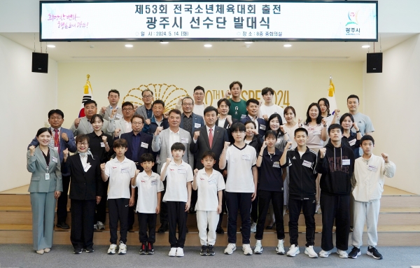 광주시는 14일 시청 중회의실에서 제53회 전국소년체육대회 출전 광주시 선수단의 선전을 기원하는 발대식을 개최했다.