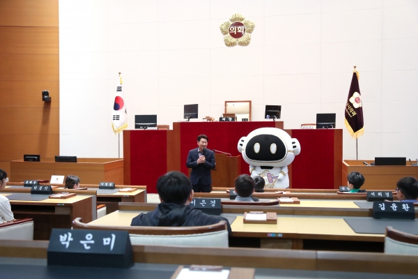 이어서 방문한 본회의장에서는 본회의가 진행되는 의원석에 앉아 본회의장의 각종 시설물과 회의 진행 과정에 대해 알아본 후, 실제 회의가 진행되는 영상을 시청하며 안건이 처리되는 과정을 상세히 배웠다. 또한 직접 의사봉을 두드려 보는 ‘의사봉 3타 체험’을 하고, 성남시의회 SNS 캐릭터 ‘이로운’과 함께 기념사진을 촬영하며 견학을 마쳤다.성남시의회 강상태 의원은 이날 시의회를 방문한 어린이들에게 “성남시의회에 방문한 왕남초등학교 어린이 여러분을 환영하며, 여러분이 배우는 민주주의 제도가 우리 일상에 얼마나 밀접하게 연관되어 있는지 이해하는 시간이 되길 바란다”고 말했다.