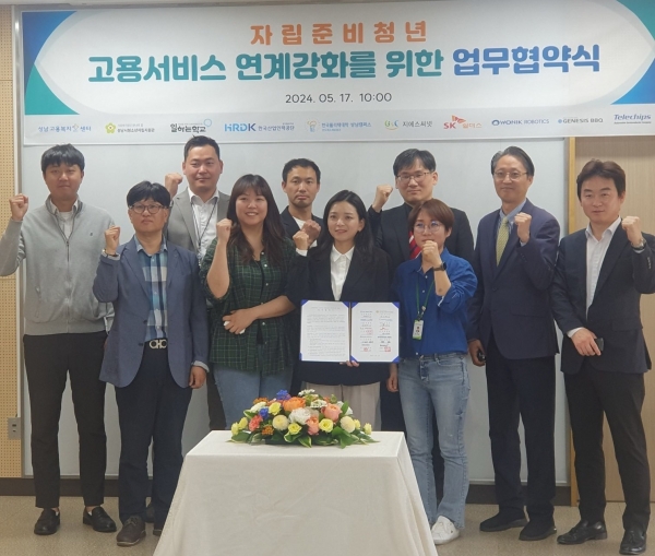 [광성일보] 고용노동부성남지청(지청장 양승철)은 5.17.(금) 지역 자립준비청년의 일을 통한 경제적 자립 지원을 위하여 산·관·학 지역자원을 한데 모아 「자립준비청년 고용서비스 강화를 위한 지역자원 연계·협력 업무협약*」을 체결하고 자립준비청년을 대상으로 맞춤형 취업지원 서비스 지원 사업을 적극 추진하기로 하였다.* (참여 기관·기업 10개소) 성남고용복지플러스센터, 성남시 청소년자립지원관, 사회적협동조합 일하는학교, 한국산업인력공단 경기동부지사, 한국폴리텍대학 성남캠퍼스, 지에스씨넷 등 6개유관기관, 에스케이쉴더스(주), ㈜원익로보틱스, ㈜제너시스비비큐, ㈜텔레칩스 등 4개 기업 등이다