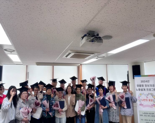 2024 맞춤형 정보제공 노후설계 프로그램 나만의 꽃길 1기 수료증 및 꽃다발 전달