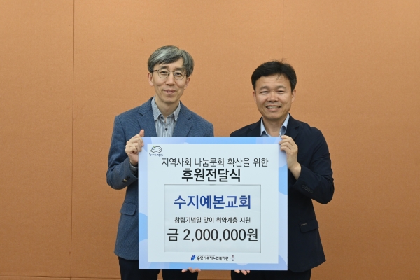[광성일보] 지구촌사회복지재단(대표이사 최성은)에서 운영하고 있는 용인시수지노인복지관(관장 김전호)은 30일 수지예본교회(담임목사 전광진)과 함께 지역사회 어르신들을 위한 후원금 전달식을 진행했다.이번 후원전달식은 교회 창립기념일을 맞이하여 후원금을 전달하기 위해 마련되었다. 수지예본교회는 2022년 대한예수교장로교회 소속으로 동천동, 풍덕천동, 고기동에 있는 분당우리교회 성도들과 함께 분당우리교회 일만성도 파송운동의 일환으로 분립된 교회이다.