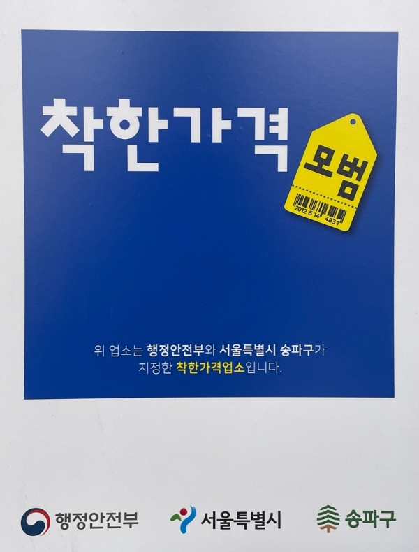 [광성일보] 송파구(구청장 서강석)이 물가안정 분위기 확산 및 지역경제 활성화에 기여하는 ‘착한가격업소’를 신규 모집한다고 밝혔다.’착한가격업소’는 서민 생활에 영향을 주는 개인 서비스 요금의 가격안정을 유도하고, 소상공인들에게는 활로를 찾을 수 있도록 지원하는 사업이다.지역 내 평균 가격보다 저렴한 가격으로 서민 물가안정에 기여하고 있는 개인서비스업소로 행정안전부 기준에 따라 지정·관리되고 있으며, 현재 송파구에는 총 44개소가 운영 중이다.