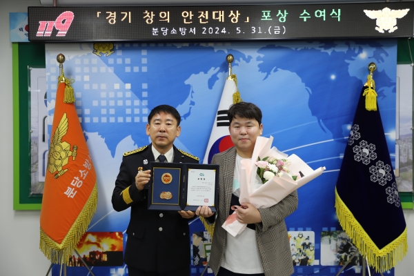 특히, 화재안전 6119 비상벨 도입으로 중요시설 화재 발생시 화재 위치와 화재상황을 동시에 전파 ․ 공유하여 신속한 초동조치가 이루어질 수 있도록 비상대응체계 운영에 기여하였다. 또한, 가상 시뮬레이션 등을 활용한 안전 C&E센터를 구축하여 직원들의 안전의식을 높이는 것에 힘을 쏟았다.「경기 창의 안전대상」은 경기도에서 재난 예방을 위해 창의적인 아이디어로 사업장 안전 문화 활성에 기여한 공이 큰 개인 및 단체에게 주는 표창장이다. 2024년 상반기에는 5점(기관 2, 민간인3)이 포상되었고, 하반기에도 같은 규모로 포상이 추진될 예정이다.서병주 분당소방서장은 “표창장을 받은 이기은 대리에게 축하의 말씀을 드리며, 더 안전한 사업장이 될 수 있도록 안전 문화 활성화에 더욱더 힘써 주기를 바란다.”고 전했다.