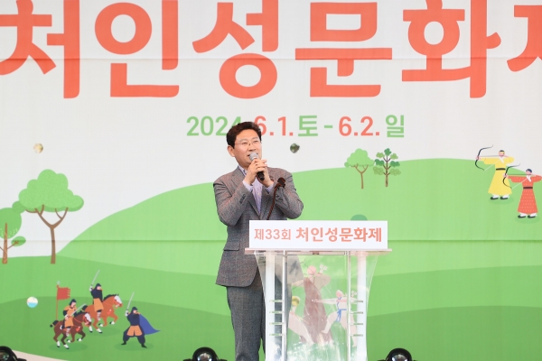 [광성일보] 이상일 용인특례시장은 1일 오후 처인구 남사읍 아곡리 처인성 일원에서 펼쳐진 제33회 처인성 문화제에 참석해 고려를 침략한 몽골군을 격퇴한 처인성 전투를 기념하고 선조들의 호국정신을 본받자고 말했다.고려시대 몽골군에 맞서 싸운 김윤후 승장과 처인부곡민을 기리기 위해 33번째로 열린 이날 처인성문화제는 용인문화원과 (사)용인시불교사암연합회, 처인성기념사업회가 주최했다.시는 국가유산청의 국가유산 호국선열 기념사업 공모 선정을 통해 확보한 국비 2000만원과 시비 6000만원을 지원했다.처인성 전투는 1232년 몽골군을 피해 강화도로 수도를 옮긴 고려 국왕 고종을 위협하기 위해 용인으로 남하한 몽골군에 대항해 승장 김윤후와 부곡민들이 치열하게 맞서 대승을 거둔 전투다.당시 김윤후 승장은 적장인 살리타이를 화살로 사살했고 수장을 잃은 몽골군이 회군하면서 고려는 위기를 넘겼다. 이후 고려왕조는 처인부곡을 처인현(縣)으로 승격됐다. 처인성은 경기도 기념물 44호다.