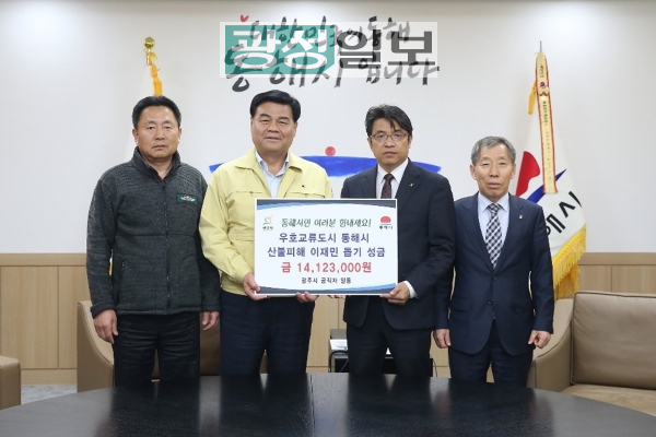 이번 산불로 피해를 입은 강원도지역 중 동해시의 경우 2007년부터 광주시와 교류협력을 추진하고 있는 우호도시로서 531억원의 재산피해 및 10여명의 인명피해도 발생해 도움의 손길이 절실한 실정이다.