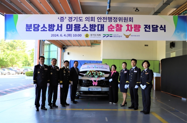 이날 행사에는 안계일 경기도의회 안전행정위원장과 이서영 의원이 참석해 분당의용소방대 한용우 연합회장과 엄수현 경기도의용소방대 여성연합회장에게 9인승 신형 카니발 차량을 전달했다.
