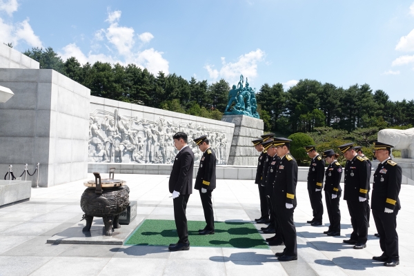 [광성일보] 성남소방서(서장 홍진영)는 제69회 현충일을 맞이하여 4일 오전 11시쯤 순직 소방공무원과 호국영령의 숭고한 희생정신을 추모하기 위해 국립대전현충원을 찾아 참배했다고 밝혔다.이날 참배는 김동길 소방행정과장을 비롯한 소방공무원 13명이 참석한 가운데 국립대전현충원 현충탑에 분향 및 순국선열과 순직 소방공무원에 대한 묵념 순으로 엄숙하고 경건한 분위기 속에서 진행되었다.