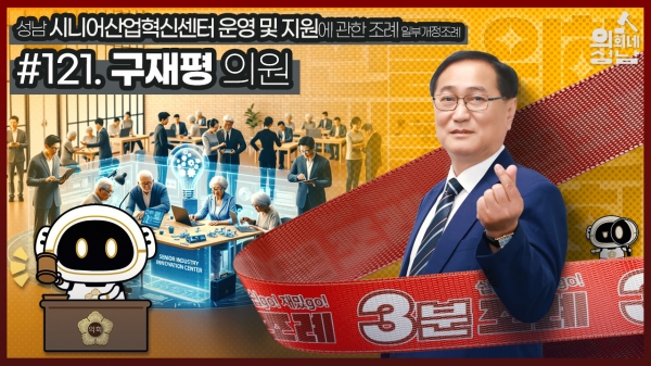 [광성일보] 성남시의회는 ‘3분 조례-구재평 의원 편’ 영상을 시의회 공식 SNS에 게시했다.이번에 소개된 조례는 구재평 의원 등 12명이 발의한‘성남 시니어산업혁신센터 운영 및 지원에 관한 조례 일부개정조례’다.
