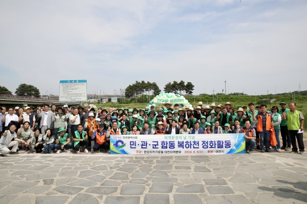 [광성일보] 이천시(시장 김경희)는 환경보호를 위한 개인과 지역사회의 활동을 장려하기 위해 제정된 6월 5일 세계 환경의 날을 기념하고, 폐기물의 순환 이용을 촉진하여 지속 가능한 순환경제사회를 만들고자 복하천에서 관내 기업 ㈜시몬스와 자원순환 업무협약을 체결하고 하천 정화 활동을 펼쳤다.이 날에는 이천시장, ㈜시몬스 부사장 외 사원 20명, 시의회 의원, 한강지키기 운동본부 10명, 지속가능 발전협의회 10명, 동지역 사회단체 100명(부발읍·4개동 각 20명), 환경기업 부서장협의회 30명, 생활폐기물 수집·운반 대행사 5명, 군부대(항공사, 서희대대) 50명, 공무원 20명 등 200여명이 참석하였다.