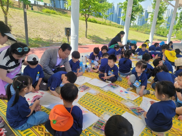 행사에 깜짝 방문한 이현재 하남시장은 촬영을 요청하는 아이들과 기념사진을 찍고 그림 그리는 모습을 지켜보면서 “아이들의 그림은 꿈과 희망이 담긴 순수한 자기표현”이라며, “특히 자연과 함께하는 그리기 활동은 아이들의 창의력을 기르는데 좋은 경험이 될 것”이라고 말했다.이에 행사를 주최한 국공립분과장 구미성 원장은 “동심을 지키기 위해 순위를 정하는 경쟁이 아닌 체험활동으로 준비했다”며, “앞으로도 아이들이 자연과 교감하면서 그 안에서 상상력을 기를 수 있도록 다채로운 프로그램을 제공하겠다”고 답했다.