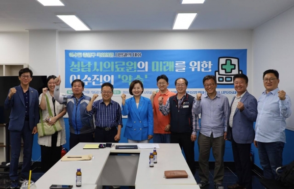 또한 “국회 보건복지위원회 소속 의원으로서 제2의 진주의료원 사태가 일어나지 않도록 사명감과 책임감을 가지고 노력하겠다”고 다짐했다.마지막으로 심우기 시민공대위 상임대표는 “이수진 의원께서 성남시의료원 정상화의 의지가 높아 힘이 난다”면서 “성남시의료원이 공공병원의 성공적인 모델이 되도록 적극적인 활동”을 부탁했다.이날 간담회에는 심우기 시민공대위 상임대표, 성남여성의전화 장효연 대표, 공공의료성남시민행동 백승우 공동대표, 박민수 민주노총 성남광주하남 지부 사무처장, 김경운보건의료노조 성남시의료원 지부장 후보, 양태종 성남비상시국회의 공동대표, 시민공대위 회원 등이 참여해 정책현안을 논의했다.한편, 이수진 더불어민주당 국회의원은 간호사, 노동운동가 출신 정치인이다.비례대표로 제21대 국회의원에 당선되었고, 22대 국회의원 선거에서 성남시 중원구에서 당선되어 상임위 보건복지위에 배정됐다. 1호 법안으로 의료급여 범위에 간병을 추가하는 내용의 '국민건강보험법 일부개정법률안', '의료급여법 일부개정법률안', '의료법 일부개정법률안'을 대표발의했다.
