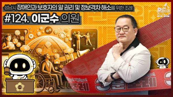 [광성일보] 성남시의회는 ‘3분 조례-이군수 의원 편’영상을 시의회 공식 SNS에 게시했다.이번에 소개된 조례는 이군수 의원 등 18명이 발의한‘성남시 장애인과 보호자의 알 권리 및 정보격차 해소를 위한 조례’다.