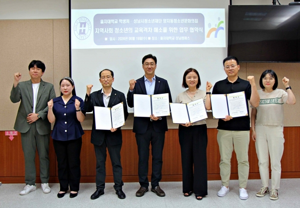 [광성일보] 성남시청소년재단 양지동청소년문화의집(센터장 윤경희)은 청소년 교육격차 해소와 학습 지원을 위해 가천대학교 ESG센터, 을지대학교 학생처 및 을지 한마음봉사단과 업무협약을 체결했다.양지동청소년문화의집은 이번 업무협약을 통해 가천대학교 재학생과 초, 중등 청소년을 1:1 매칭하여 교과 학습을 돕고, 놀이 활동과 진로에 관한 멘토링을 지원하는 등 청소년을 위한 다양한 활동을 지원을 위한 상호 협력을 다짐했다.