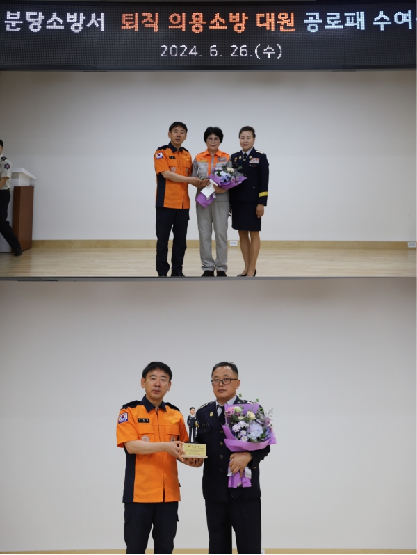 분당소방서(서장 서병주)는 퇴직 의용소방대원에 공로패 수여식 진행