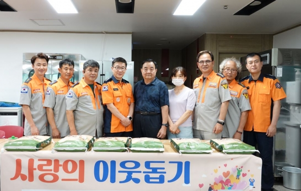 이날 사랑의 이웃돕기 행사에는 홍진영 성남소방서장을 비롯한 노남선 성남의용소방대 연합회장, 박병구 고등남성의용소방대 대장 및 남성 대원 5명과 소방공무원 4명 참석한 가운데 진행되었다.