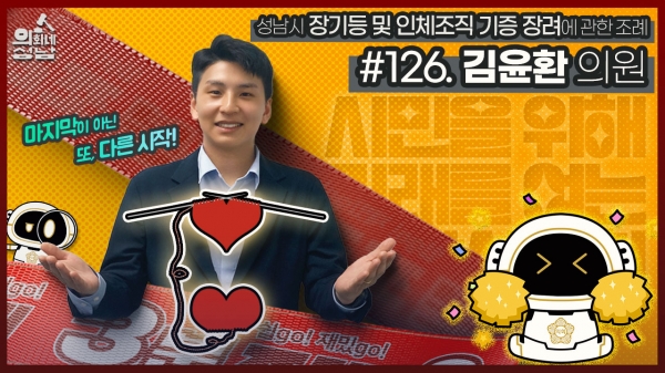 [광성일보] 성남시의회는 ‘3분 조례-김윤환 의원 편’영상을 시의회 공식 SNS에 게시했다.이번에 소개된 조례는 김윤환 의원 등 9명이 발의한‘성남시 장기등 및 인체조직 기증 장려에 관한 조례’다.