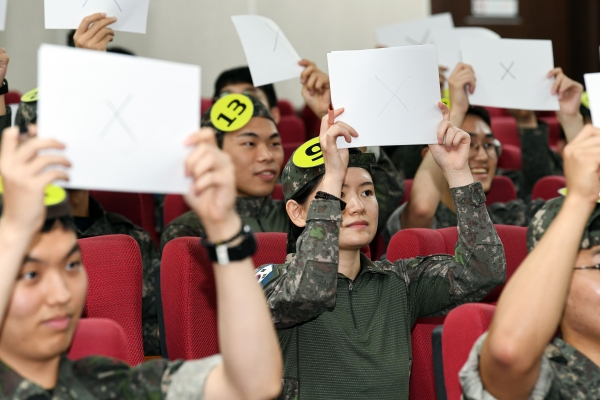 [광성일보] 공군 제15특수임무비행단(이하 ‘15비’)은 7월 3일(수) 서울기지 장병의 ‘즉·강·끝 태세 확립’과 올바른 ‘국가관·대적관·군인정신’ 함양을 위한 「정신전력 O/X 퀴즈대회」를 진행했다. 이번 정신전력 O/X 퀴즈대회는 ‘재미’와 ‘교육’ 두 가지를 좋아하는 MZ 세대 장병들의 눈높이에 맞춰 정신전력교육을 좀 더 창의적이고 유익하게 전달하기 위해 준비됐다. 부대는 이번 O/X 퀴즈대회를 통해 장병들이 자발적으로 공부하여 정신전력교육 내용을 자기화할 수 있도록 했고, 사전 홍보를 통해 부대 희망 장병 60명을 자발적으로 참여하게 했다.
