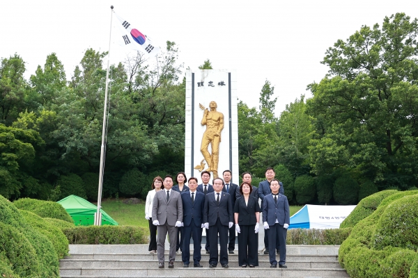 [광성일보] 성남시의회가 제9대 후반기 의장단 구성을 완료하고, 새로운 리더십 아래 의정 활동의 첫 걸음으로 7. 3.(수) 현충탑을 참배했다.현충탑 방문에는 새롭게 구성된 제9대 후반기 의장단인 이덕수 의장과 안광림 부의장, 정용한 국민의힘 대표의원, 이준배 더불어민주당 대표의원, 강상태 의회운영위원장, 서은경 행정교육위원장, 조우현 경제환경위원장, 안극수 문화복지체육위원장, 박은미 도시건설위원장, 김종환 예산결산특별위원장, 김선임 윤리특별위원장 등 11명 전원이 참석했다.새롭게 선출된 이덕수 의장을 비롯한 의장단 구성원들은 순국선열과 호국영령에 대한 묵념을 올리며, 앞으로 시민을 위해 봉사하고 성남시의 미래를 여는 데 앞장설 것을 다짐했다.