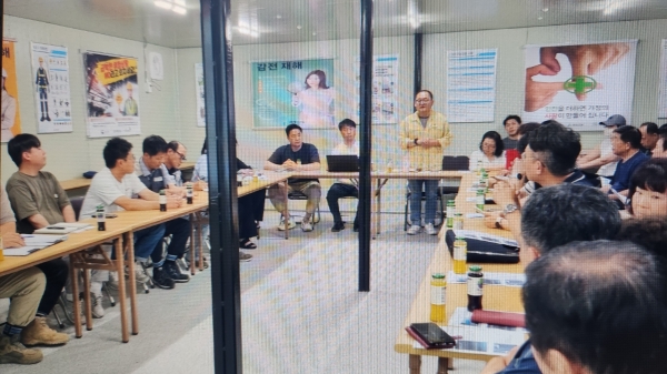 [광성일보] 이군수 의원(신흥2‧3동·단대동, 더불어민주당)은 지난7월3일(수요일) 오후7시 수정 청소년수련관 현장사무실 1층 회의실에서 인근 산자푸 3단지(회장 곽희성) 주민 30여명이 참석한 가운데 공사 발주처인 성남시청 시설공사과 담당자, 시공사인 명신건설 현장책임자,감리 책임자등이 참석한 가운데 주민들의 불편사항을 청취하고 이를 시공사와 성남시측에 전달 하였다.