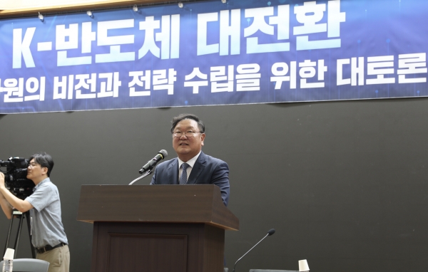 [광성일보] 파격적인 반도체 특별법을 대표발의한 김태년 의원(민주당, 성남 수정)이 국회에서 토론회를 열고 법안 통과에 드라이브를 걸었다. 최근 반도체 산업은 호황이다. 상반기 반도체 수출액은 전년 대비 52.2% 증가한 657억 달러를 기록했다. 그러나 김태년 의원은 외형적 호황에 낙관해서는 안 된다고 경고했다.AI가 촉발한 반도체 전쟁의 양상이 기업 간 경쟁을 넘어 국가 간 대항전으로 확장되고 있다는 점을 지적했다. 이미 미국, 유럽, 일본을 비롯한 주요 선진국들은 자국에 유리한 반도체 공급망 재편을 위해 막대한 지원을 쏟아붓는 중이다. 반도체 패권 전쟁에서 승기를 잡기 위한 국가 차원의 적극적 대응이 시급한 상황이다.