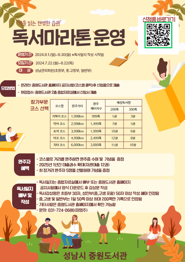 성남시중원도서관, ‘제1회 독서마라톤’ 참가자 모집