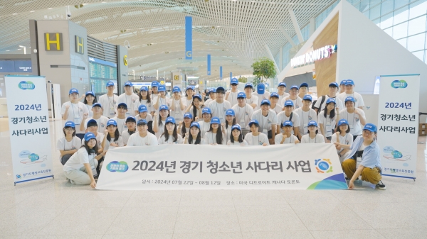 지난 26일 경기도에 따르면 22일 25일 양일간 경기청소년사다리 참가자 95명과 인솔자가 미국과 캐나다를 향해 출국했다. 이들은 8월 12일까지 약 3주간 미국 디트로이트와 캐나다 토론토 등 북미 국가를 방문해 어학연수를 비롯해 다양한 현지 체험을 진행할 예정이다.참가자들은 연수 기간 평일 오전에는 어학수업을 오후에는 체육활동, 영어 실전 활용 미션, 팀프로젝트를 수행한다. 주말에는 박물관 견학, 미시간대학교 토론토대학교 등 대학 멘토링 투어, 명소방문 등 다양한 활동을 참여하게 된다.