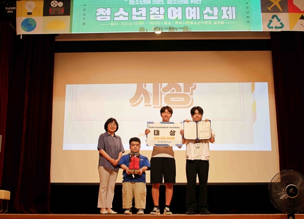 지난 7월 한 달간, 성남시 청소년들이 제안한 사업들은 서류심사를 거쳐 전문 심사위원과 청소년 심사단의 발표심사와 사전투표 점수를 합산한 결과에 따라 대상 등 4개의 부문별로 5개 팀에게 상과 문화상품권을 수여했다.특히, 최고 득점으로 대상을 수상한 제안 사업 ‘Healthy Pleasure 실천을 위한 요리교실 『혼밥러를 부탁해!』’는 수정·보완 작업을 거쳐 2025년 신규사업으로 편성할 예정이다.