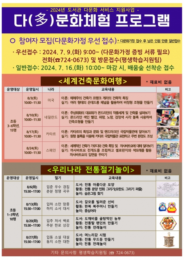 이번 사업은 문화체육관광부가 추진하는 공모사업으로 중원도서관은 지역 어린이들을 위한 다문화 인식 개선 등 다양한 프로그램을 운영할 예정이다.참가 대상은 지역 어린이집 및 유치원 아동이며, 중국·일본·베트남 결혼 이주 다문화 강사가 프로그램을 진행한다.