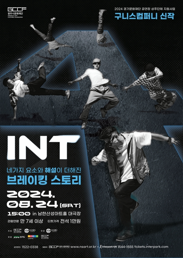 [광성일보] (재)광주시문화재단(대표이사 오세영)은 8월 24일(토) 15시 남한산성아트홀 대극장에서 상주단체 구니스컴퍼니의 신작 공연 <4INT>를 선보인다고 밝혔다. 구니스컴퍼니는 ‘경기문화재단 공연장 상주단체 지원사업’을 통해 2023년에 이어 2년 연속 광주시문화재단의 상주단체로 활동하고 있는 스트릿댄스 크루이다. 브레이킹을 기반으로 미디어아트와 다양한 예술 분야를 접목, 비보잉의 영역을 넓혀가며 활발히 활동 중이다.