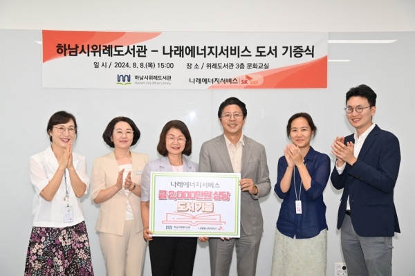 [광성일보] 하남시(시장 이현재)는 8일 위례도서관에서 열린 도서 기증식을 통해 나래에너지서비스㈜(대표이사 한수미·김봉진)로부터 총 2,000만원 상당의 도서를 기증받았다고 밝혔다.이번 도서 기증은 나래에너지서비스가 추진하는 ‘행복나눔’ 사업의 일환으로 진행된 것으로, 앞서 나래에너지서비스는 지난 2021년에도 5000만원 상당의 도서를 하남시일가도서관에 기증한 바 있다.