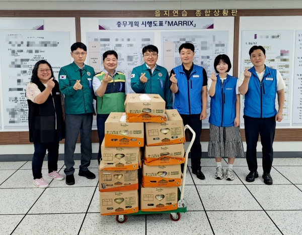 [광성일보] 성남시청공무원노동조합(위원장 이기행)은 8월 19일부터 22일까지 3박 4일간 실시하는 ‘2024년 을지연습’에 참여하는 공무원 조합원들을 위문하기 위하여 훈련장을 방문하였다. 성남시는 시청 충무시설을 비롯하여 3개 구청 상황실에서 시·구 공무원 및 경찰서, 소방서, 군부대 등 모두 1,000여 명이 전시 대비 도상훈련을 진행하고 있다.