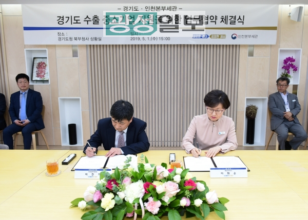 이화순 경기도 행정2부지사와 이찬기 인천본부세관장은 1일 오후 경기도청 북부청사 상황실에서 이 같은 내용을 담은 ‘수출기업 지원을 위한 경기도-인천본부세관 업무협약’에 서명했다.