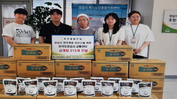 [광성일보] 한국도로공사 교통센터는 지난 22일 성남시독거노인종합지원센터에 삼계탕(800g) 215개를 전달하였다. 삼계탕은 지역사회 독거 노인의 무더위 극복을 위해 준비됐으며 센터는 결식 우려가 있는 취약계층 어르신에게 삼계탕을 전달하기로 하였다.