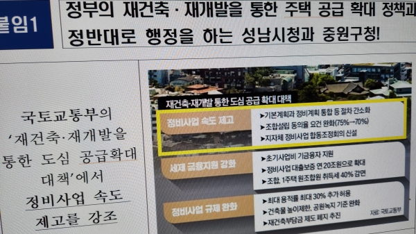 [광성일보] 상대원2구역 주택재개발정비사업 조합은 2022년 7월 이주개시를 시작으로 현재 전체 조합원의 99.92%가 이주 완료 및 80% 이상 철거를 완료한 상태입니다. 우리 상대원2구역 조합원들은 2024년 하반기 철거를 완료하여 내년 상반기 예정인 일반분양과 착공을 손꼽아 기다리고 있습니다. 우리 조합은 실착공 이전단계로 아직 공사비가 확정되지 않았으며, 최근 공사비가 지속적으로 오르고 있어 조합원들의 분담금은 계속해서 증가  2022년 이주개시 시점을 시작으로 이자비 및 사업비로 인해 매달 30억원의 이자가 발생(하루 1억원의 비용 발생)하고 상황으로 조합원들의 부담이 가중되고 있는 실정  현재 정부(국토교통부 중심)에서는 빠른 재개발, 재건축으로 주택공급을 늘리고 주택시장을 안정화하려 노력하고 있으나, 성남시 인허가청은 정부의 방향과 모순되게 행정처리를 하고 있습니다. 국민 주거안정을 위한 주택공급 확대방안 (관계부처 합동, 2024.08.08.)○ 재개발 재건축 등 정비사업 속도 높인다 (국토부 보도자료, 2023.09.07.) 성남시청과 중원구청의 소극 행정처리로 인해 우리 상대원2구역 주택재개발정비사업은 사업지연이 발생되어 엄청난 손해를 보고 있습니다.