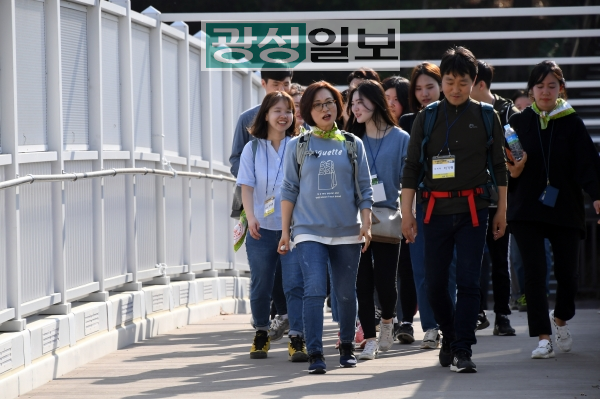 은수미 성남시장은 3일 오후 90년대생 직원들과 누비길을 걸으며 허심탄회한 대화를 나눴다. 사회에 새롭게 진입하는 가장 젊은 계층인 90년대생들의 생각과 비전을 들어보고 더 나은 공공서비스를 위한 아이디어를 공유하기 위해서다.