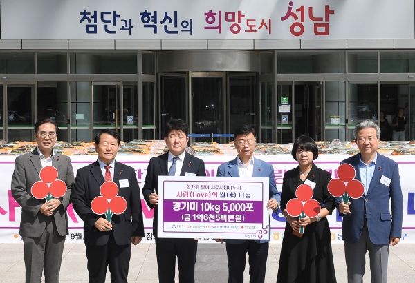 NH농협 성남시지부는 어려운 이웃에게 전달해 달라며 1억6500만원 상당의 쌀 5000포대(포대당 10㎏)를 9월 4일 성남시에 맡겼다.