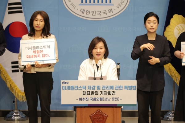 또 폐기물을 배출하려는 자에 대해 미세플라스틱이 유출되지 않도록 하는 의무를 부과하고, 시ㆍ도지사는 미세플라스틱이 하천ㆍ호소에 유출되지 않도록 필요한 조치를 하는 등의 내용을 담았다.이수진 의원은 “미세플라스틱 시험법 개발과 분석을 통해 모든 환경과 매질에서 미세플라스틱이 검출되고 있다”며 “시민의 건강한 먹거리, 안전한 일상을 위해 「미세플라스틱특별법」을 만드시 통과시키겠다”고 말했다.