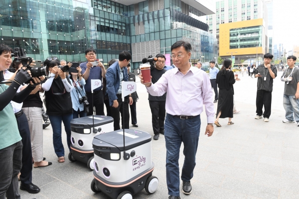[광성일보] 성남시(시장 신상진)가 전국 지자체 최초로 도심형 자율주행 로봇배달 서비스를 판교역 일대에서 개시했다. 성남시는 9일 오후 1시 판교역 광장에서 ‘성남형 로봇배달 서비스’의 시작을 알리는 시연회를 개최했다. 이날 시연회에서는 신상진 성남시장이 참석해 로봇배달 서비스 운영 사항을 점검하고 배달 음식 주문과 수령까지 전체 과정을 직접 확인했다.