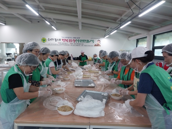 성남시새마을회(회장 방영기)는 추석을 앞두고 따뜻한 이웃사랑 실천을 위하여 전통음식 만들기 행사를 진행하였다.