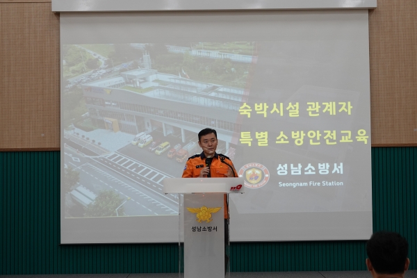 [광성일보] 성남소방서(서장 홍진영)는 성남시 관내 숙박시설 관계자 250여 명을 대상으로 10일부터 11일까지 이틀 동안 특별 소방안전교육을 실시한다고 밝혔다.이번 교육은 최근 부천시 호텔 화재를 계기로 유사 사례를 방지하고 숙박시설의 화재안전관리 강화 및 관계자와 이용객들의 안전의식 개선을 위해 마련되었다.
