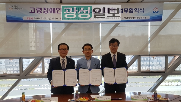 성남시(시장 은수미)와 동서울대학교, 성남시장애인종합복지관은 5월 7일 오후 3시 시청 5층 복지국 회의실에서 ‘고령 장애인 평생교육 지원에 관한 업무 협약’을 했다.