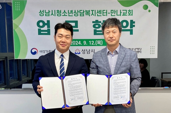 [광성일보] 성남시청소년재단 성남시청소년상담복지센터(소장 임낙선)는 지난 12일, 성남시 내 위기 및 경제적 취약계층 청소년을 발굴하고 지원하기 위해 성남시새마을부녀회(회장 권오금), 만나교회(목사 김병삼), 유디간호학원(원장 방연주)과 업무협약을 체결했다고 밝혔다.