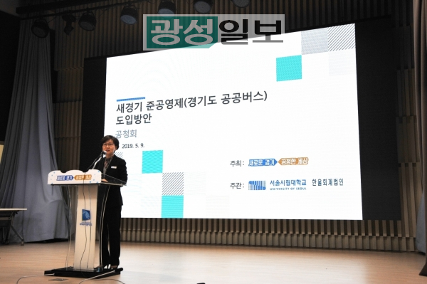 이날 공청회는 서울시립대학교 산학협력단에서 연구한 ‘광역버스 새경기 준공영제 연구용역’을 바탕으로 김도경 교수가 ‘새경기 준공영제(경기도 공공버스) 도입방안’에 대한 세부시행 방안 결과를 발표하는 것으로 시작했다.