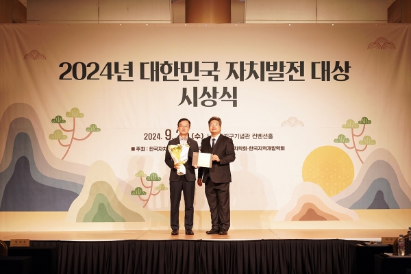 [광성일보]  성남시는 한국자치발전연구원 주최로 25일 서울 용산구 백범김구기념관 컨벤션홀에서 열린 ‘2024 대한민국 자치발전 대상 시상식’에서 기초자치 부문 대상을 수상했다대한민국 자치발전 대상은 국정, 광역, 기초, 공직자, 민간 부문에서 지방자치 발전에 이바지한 단체와 대표자에 주는 상이다.기초자치 부문은 지방자치단체와 해당 단체장 업적을 동시에 평가해 수상 기관을 선정했다.