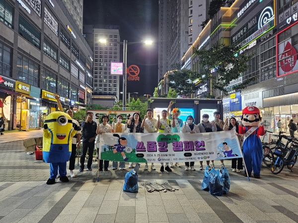하남시 청년들을 대표하는 청년메이트(청년명예시장 및 청년정책특보단)들은 지난 6월 미사문화거리에서 첫 번째 쓰줍킹을 진행한 데 이어 7월에는 감일·위례신도시, 8월에는 원도심에서 각각 행사를 연 후 다시 미사강변도시로 돌아와 올해 4번째로 캠페인을 진행했다.특히 이번 캠페인은 ‘청년의 날’(매년 9월 세 번째 토요일)을 맞아 쓰줍킹 캠페인에 참여할 청년들을 모집해 열정적으로 행사를 진행했다는 점에서 청년메이트의 자체활동으로 진행됐던 앞선 세 차례 행사와는 차별화된 모습을 보였다.이날 캠페인에 참여한 청년들은 쓰줍킹 활동의 시그니처로 꼽히는 슈퍼마리오 캐릭터 코스튬 의상을 착용하고 미사역 시계탑, 미사문화거리, 미사호수공원 일대 등을 돌며 거리 곳곳의 담배꽁초 등 쓰레기를 주우며 시민들의 이목을 집중시켰다.아울러 캠페인에 참여한 청년들은 캠페인 과정에서 시민들과 함께하는 팀별 미션을 수행하는 등 청년 특유의 위트를 곁들인 활동으로 웃음을 자아내기도 했다.