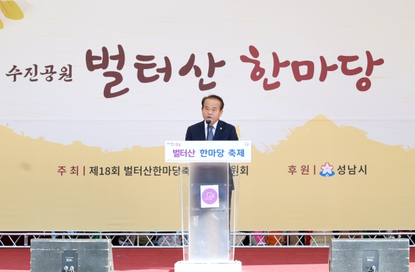 성남시의회 이덕수 의장은 이날 축사를 통해“벌터산 한마당 축제는 우리 성남을 대표하는 자랑스러운 문화유산”이라며, “오늘 축제를 통해 주민들 간의 소통과 화합이 더욱 깊어지기를 바란다.”라고 말했다.