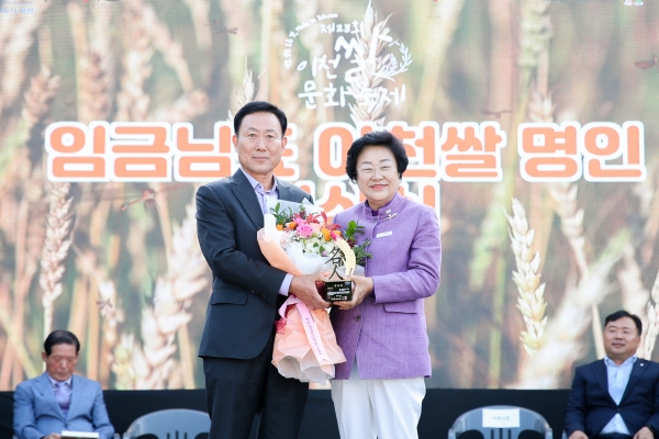 [광성일보] 「제3회 임금님표 이천쌀 명인 선발대회」 시상식이 10월 17일 이천시(시장 김경희) 농업테마공원 이천쌀문화축제장에서 열렸다.올해의 임금님표 이천쌀 명인 선발대회에서는 1차 벼 재배 현장 평가와 2차 쌀 품위, 쌀 식감 분석 심사로 가장 높은 점수를 받은 최동석(부발읍) 농업인이 명인으로 선정되었고, 금상 손종복(장호원읍), 은상 신화철(설성면), 동상 윤승영(모가면), 동상 김학길(신둔면) 농업인이 선정되었다.