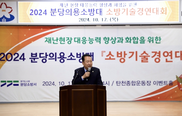 [광성일보] 경기도의회 안계일 의원(국민의힘, 성남7)은 17일 분당 탄천공원에서 열린 “분당의용소방대 소방기술경연대회”에 참석하여 대원들을 격려하고, 지역 안전을 책임지는 의용소방대의 헌신에 깊은 감사를 표했다.이번 경연대회는 의용소방대원들이 그동안 연마해 온 화재진압, 인명구조, 응급처치 등의 소방 기술을 선보이며 지역 사회 안전을 위한 역량을 입증하는 자리였다..